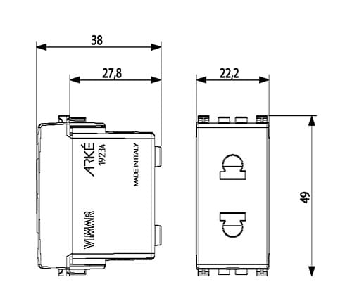 VIMAR SPA - VIW19234 PRESA SICURY 2P 16A USA+EU D4,8MM GRIGIO - 19234