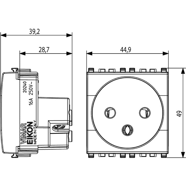 VIMAR SPA - VIW20240.B PRESA SICURY 2P+T 16A ISRAELIANO BIANCO - 20240.B