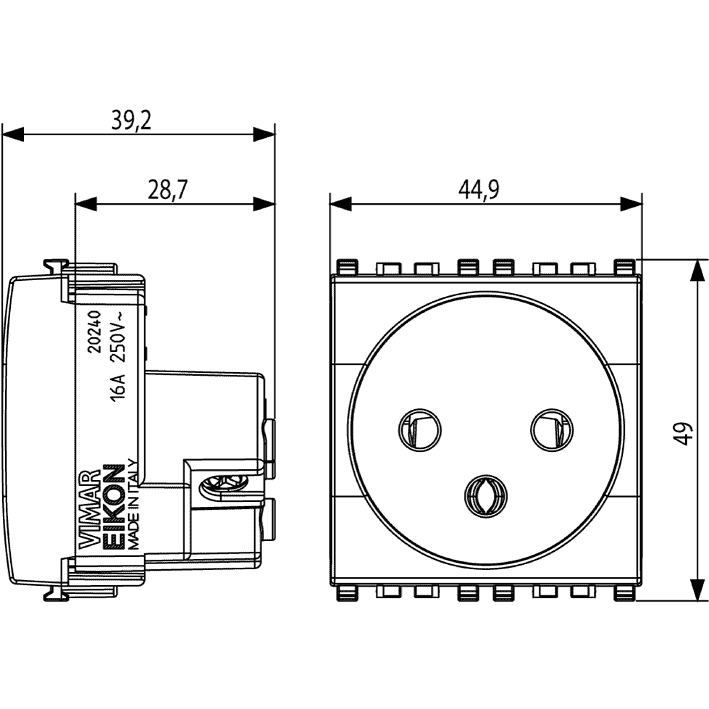VIMAR SPA - VIW20240.N PRESA SICURY 2P+T 16A ISRAELIANO NEXT - 20240.N