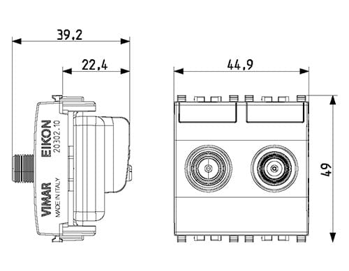 VIMAR SPA - VIW20302.10.N PRESA TV-RD-SAT PASSANTE 2 USCITE NEXT - 20302.10.N