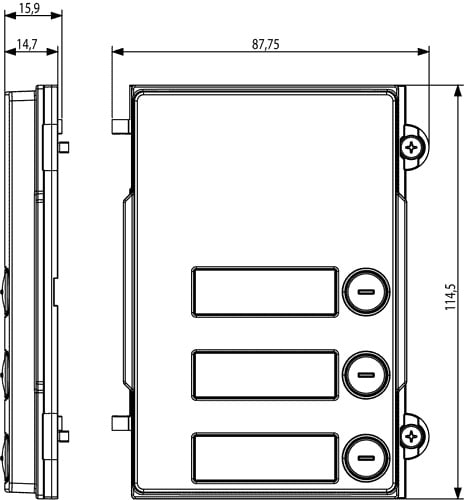 Modulo frontale 3 pulsanti, Pixel heavy, per unità elettronica 41010, grigio sablé. Protezione agli impatti meccanici esterni IK10, grado di protezione IP54.