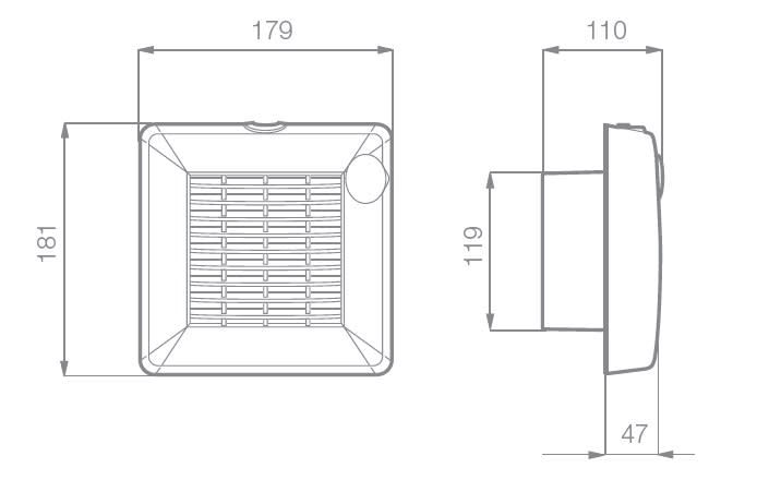 • Portamotore e griglia realizzati in ABS trattato anti-UV.• Portata d’aria elevata e basso livello sonoro e consumo energetico grazie a ventola e portamotore a profilo alare.• Modelli base regolabili in velocità.• Dati e prestazioni certificati da IMQ Performance.• Isolamento: Cl.II