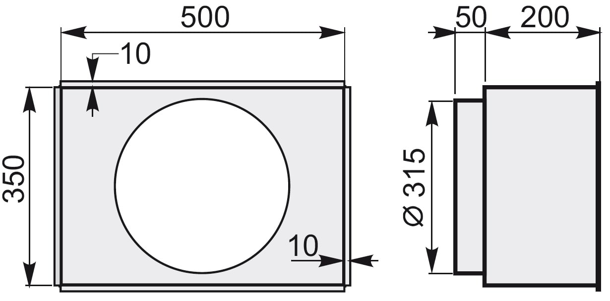 Raccordo da applicare a parete tra griglia esterna e prodotto o tubi con terminali Ø 315 mm.