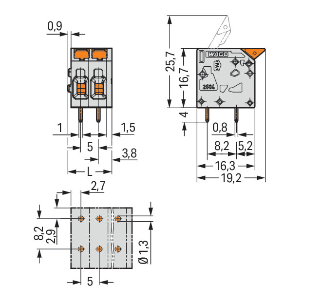 WAGO ITALIA SRL - WAG250-104 PULSANTE MORSETTO PER CIRCUITO STAMPATO - 250-104