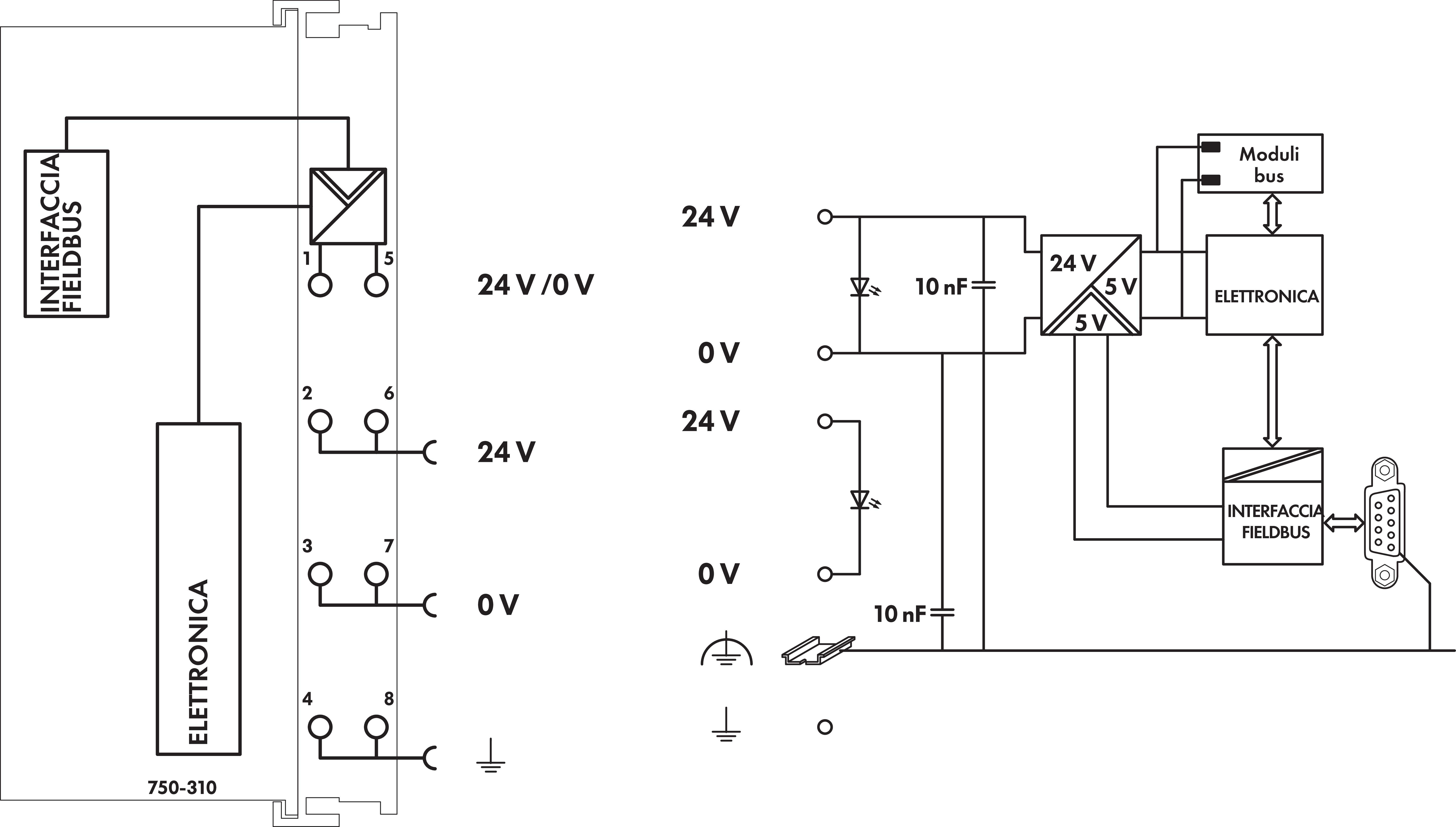Collegamento bus di campo tramite accoppiatore separato possibile: