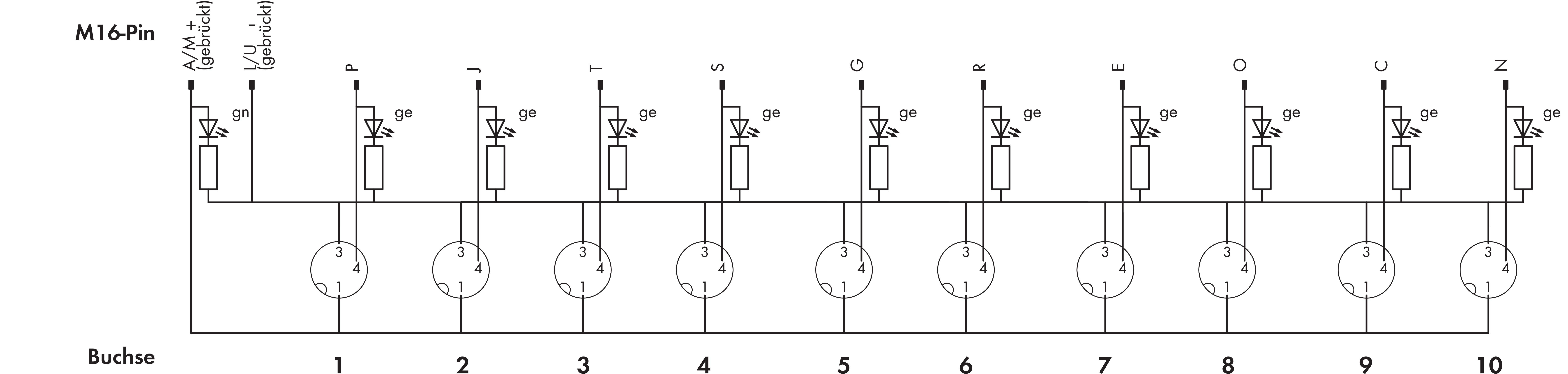 Esecuzione delle uscite per linee sensori/attuatori - M8