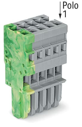 Spina femmina per 1 conduttore; CAGE CLAMP®; 4 mm²; Passo pin 5 mm; 5 poli; Pin di codifica; 4,00 mm²; grigio, giallo-verde