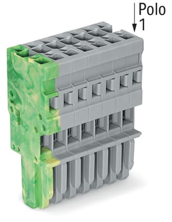 Spina femmina per 1 conduttore; CAGE CLAMP®; 4 mm²; Passo pin 5 mm; 7 poli; Pin di codifica; 4,00 mm²; grigio, giallo-verde