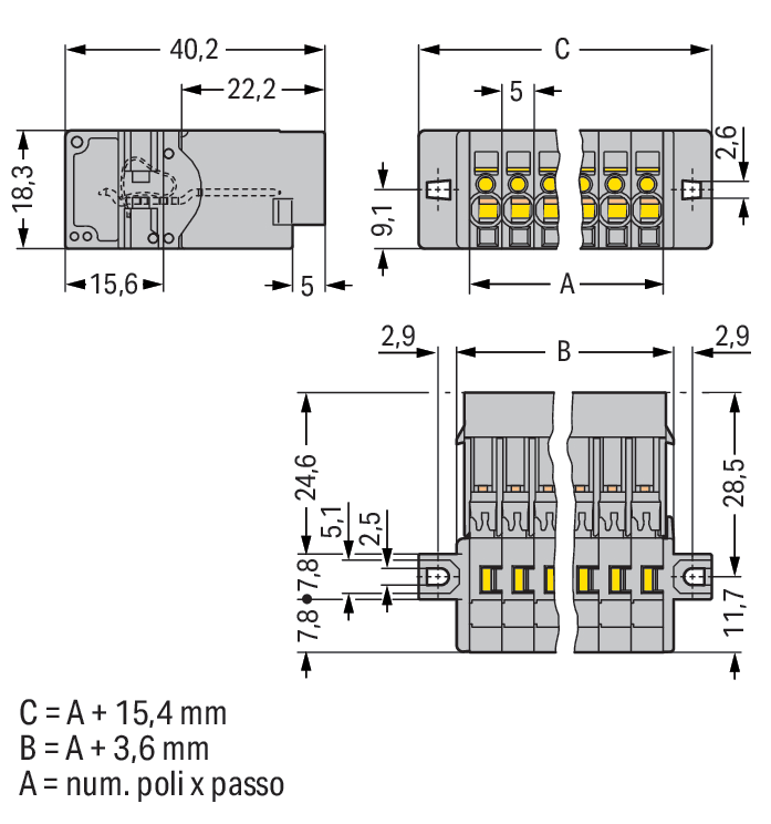 Connettore maschio per 1 conduttore; CAGE CLAMP®; 4 mm²; Passo pin 5 mm; 4 poli; collare di fissaggio; 4,00 mm²; grigio