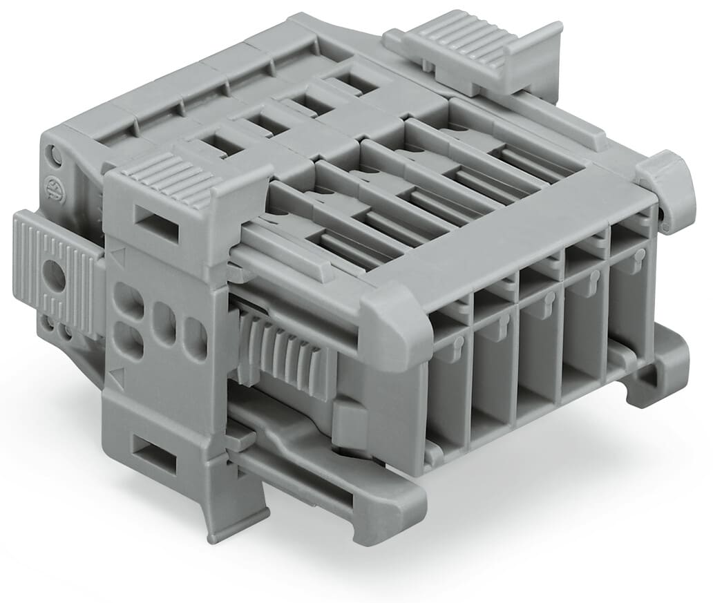Connettore maschio per 1 conduttore; CAGE CLAMP®; 4 mm²; Passo pin 5 mm; 12 poli; Flangia a scatto; 4,00 mm²; grigio