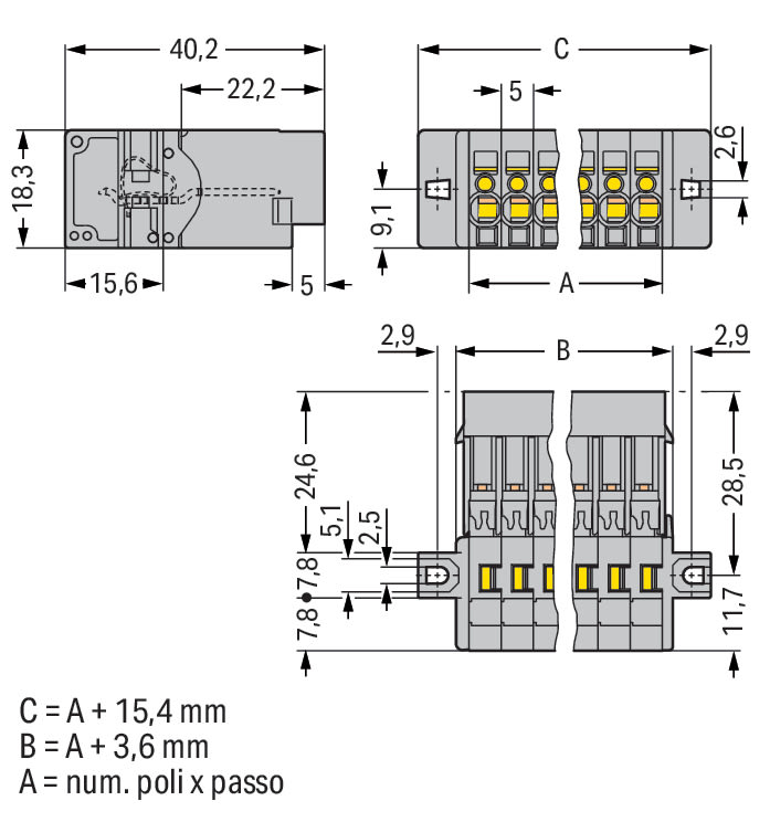 Connettore maschio per 1 conduttore; CAGE CLAMP®; 4 mm²; Passo pin 5 mm; 14 poli; collare di fissaggio; 4,00 mm²; grigio