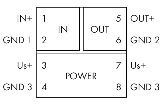 Separazione galvanica tra ingresso e uscita: