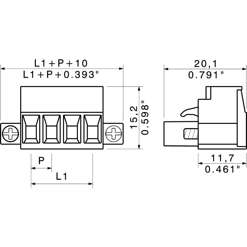 Dimensione modulare dei contatti - 5.08 mm