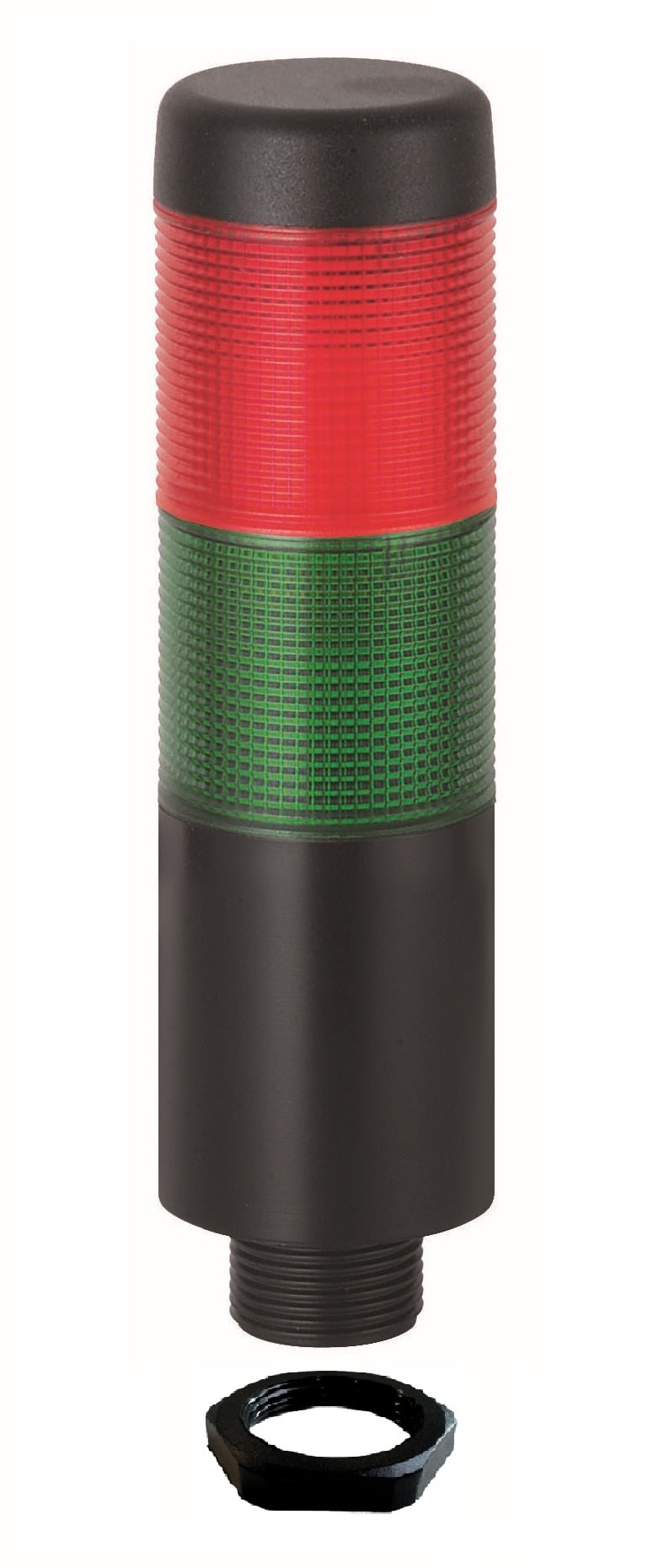 Fertig konfigurierte Signalsäule mit 2 optischen Stufen (grün/rot) LED-Dauerlicht Mit Kabelanschluss Auch in ansprechendem Metallic-Design und klarer Kalotte erhältlich