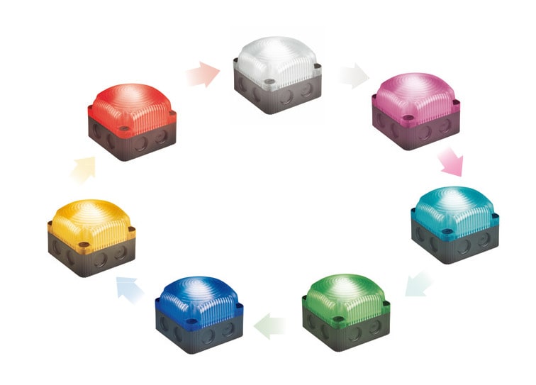 LED Permanent light (multicolour) in attractive quadratic form 7 different status warnings can be signalled by just one beacon (7 colours) The three basic colours (red/yellow/green) can be triggered using only two PLC outputs Easy assembly due to quick-release screws