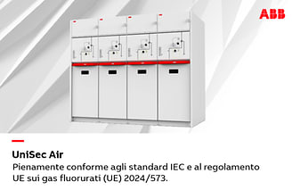 UniSec Air è la soluzione ABB per la distribuzione elettrica secondaria di media tensione pienamente conforme agli standard IEC e al regolamento UE sui gas fluorurati (UE) 2024/573.