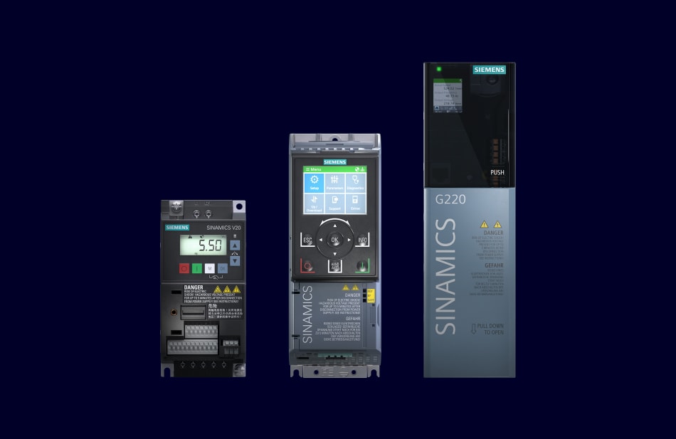 Con le famiglie SINAMICS G e V puoi scegliere sistemi di azionamento affidabili, efficienti e sostenibili; progettati per coprire una moltitudine di applicazioni: quelle più semplici (ed es. utilizzando SINAMICS V20) e quelle più esigenti (ad es. scegliendo SINAMICS G220, il nuovo arrivato).