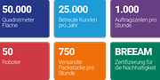 50 im Einsatz befindliche Roboter sorgen dafür, dass die Aufträge schnell und äußerst präzise abgewickelt werden, wobei eine Kommissionier-Leistung von über 750 Zeilen pro Stunde und ein Versand von bis zu 1.000 Paketen pro Stunde erreicht wird. Dank dieser fortschrittlichen Automatisierung garantieren wir eine dynamische und besonders reaktionsschnelle Auftragsverwaltung unserer Kunden.