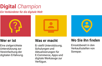 Durch qualifizierte Assistenz erleichtert der Digital Champion den Zugang zu digitalen Werkzeugen, unterstützt das Verständnis der Funktionalitäten und bietet operative Anleitungen zur Optimierung von Einkaufsprozessen. Außerdem informiert er laufend über digitale Neuigkeiten und trägt so zur Verbreitung und effektiven Nutzung der Sonepar-Technologien bei.