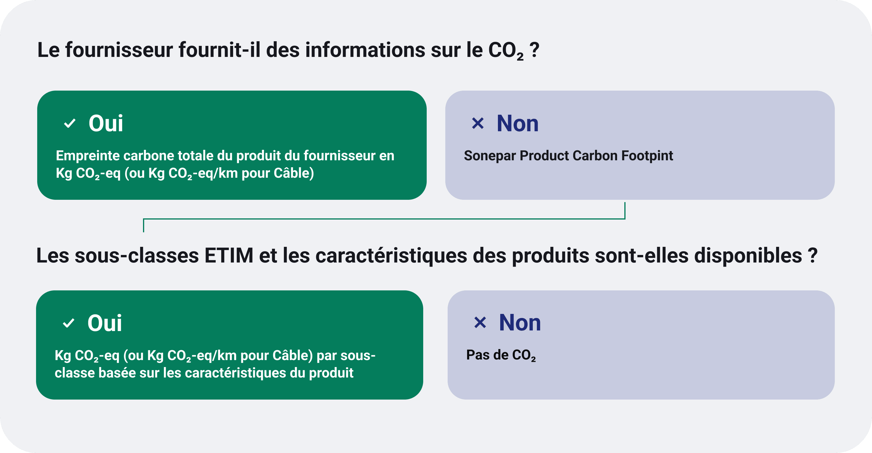 - Les déclarations CO2-éq des fournisseurs et les déclarations environnementales de produit transmises à Sonepar